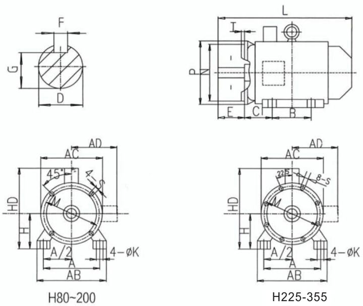 YE3系列三相異步電動機安裝及外形尺寸圖